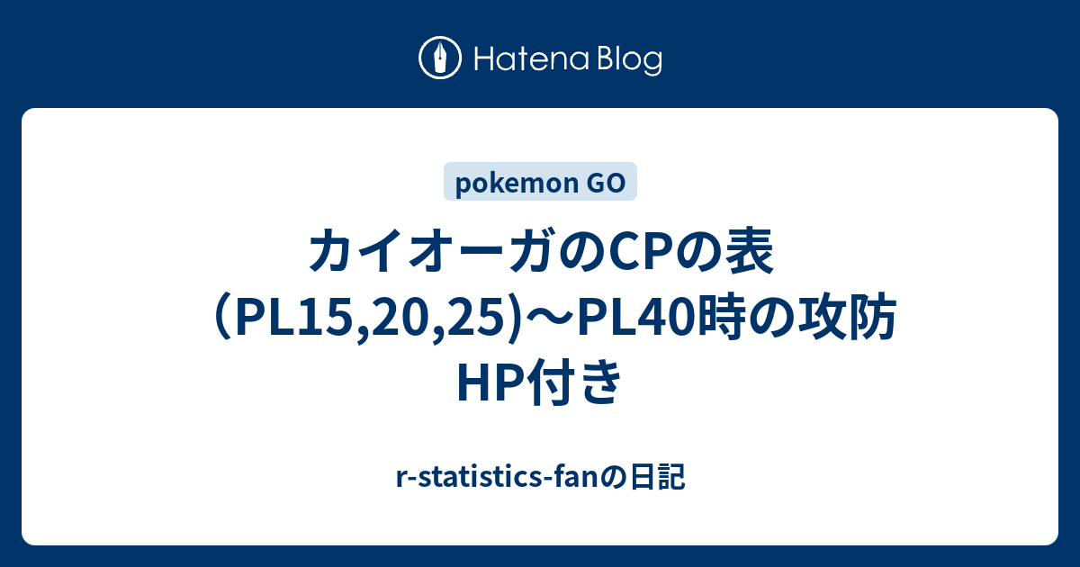 カイオーガのcpの表 Pl15 25 Pl40時の攻防hp付き R Statistics Fanの日記